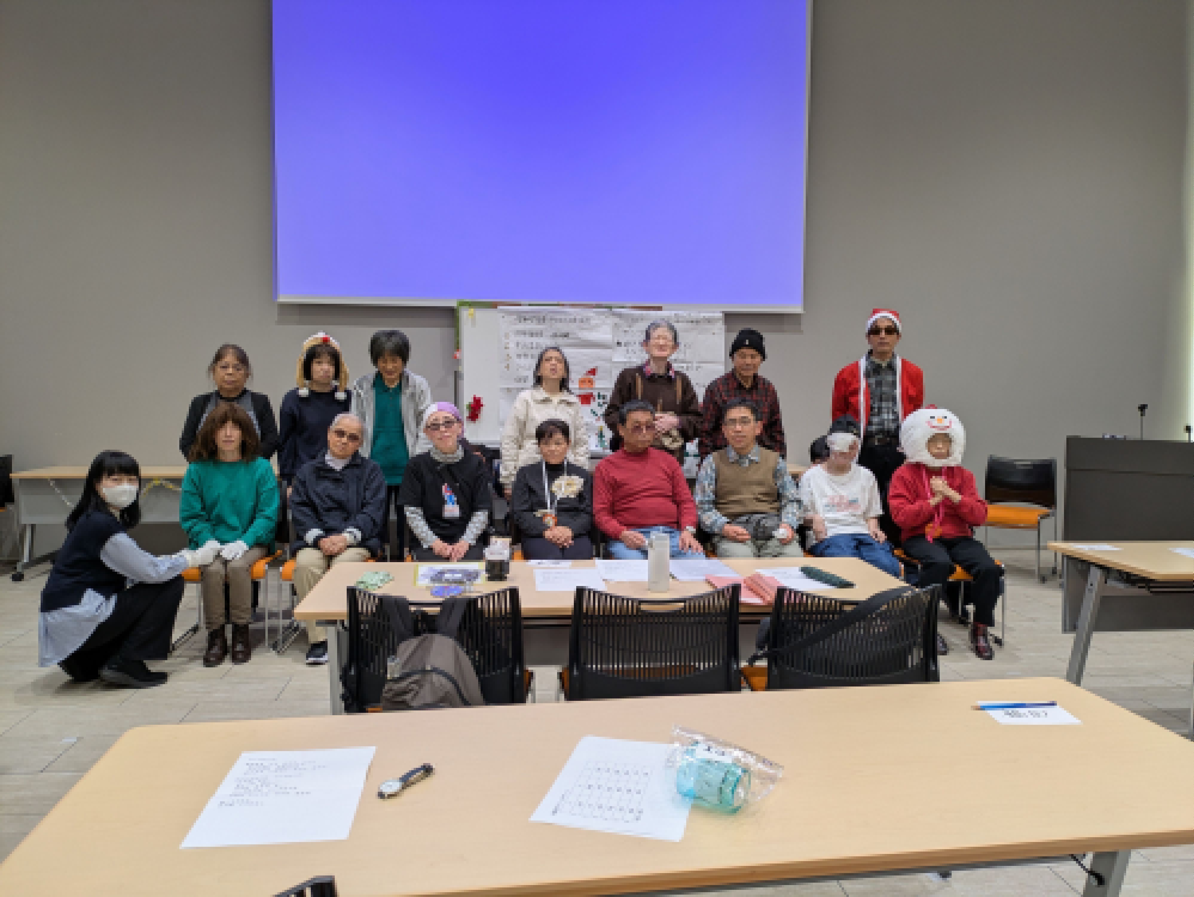 2025年12月20日(土)クリスマス交流会をしました。盲ろう者19名、通訳介助員39名参加でした。クイズ、ゲーム、手話歌など楽しい1日を過ごしました。