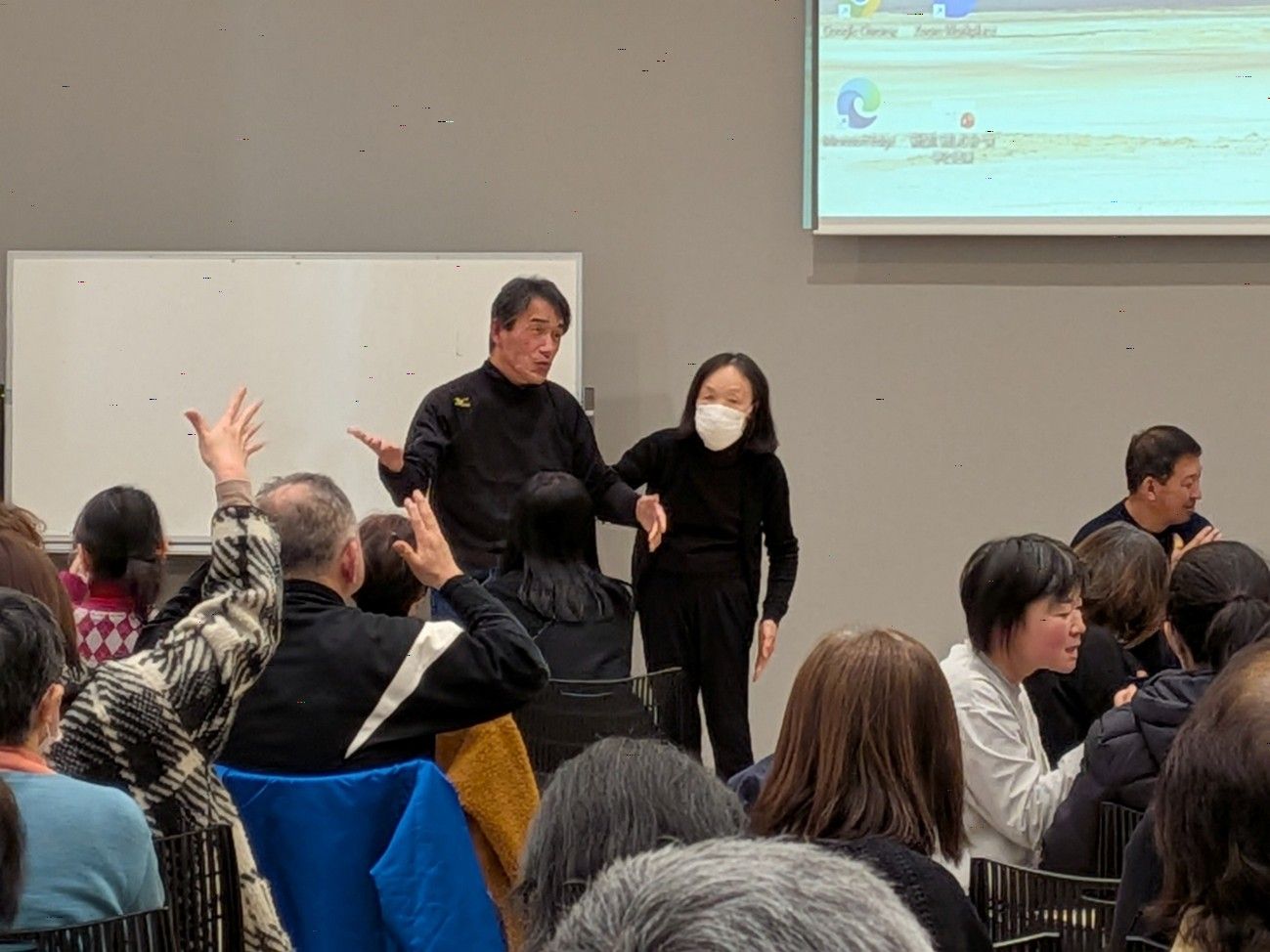 午前、午後併せて70名の方に参加いただきました。盲ろう者が監督と主演を務める映画です。